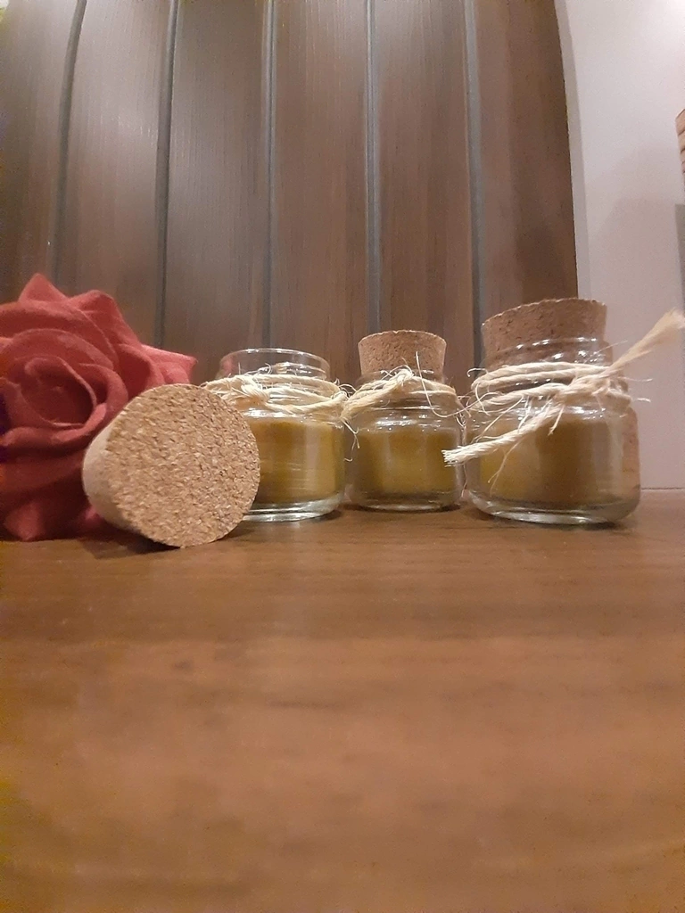 Descubra o encanto das nossas velas artesanais feitas com 100% cera de abelha pura, cuidadosamente produzidas à mão. Cada vela vem em um delicado pote de vidro, tamanho ideal para decorar qualquer ambiente com charme e sofisticação.